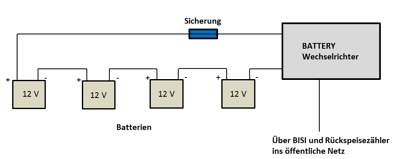 Der Ladezustand der Batterie wird damit bei über 90% gehalten. Sinkt die eingespeiste Netzleistung auf einen Wert unter dem Eigenverbrauch des Gerätes (je nach Typ 2-10W) ab, schaltet der Wechselrichter wieder aus.